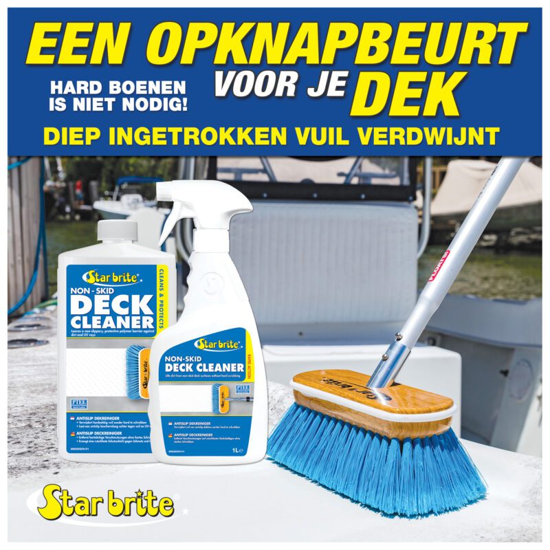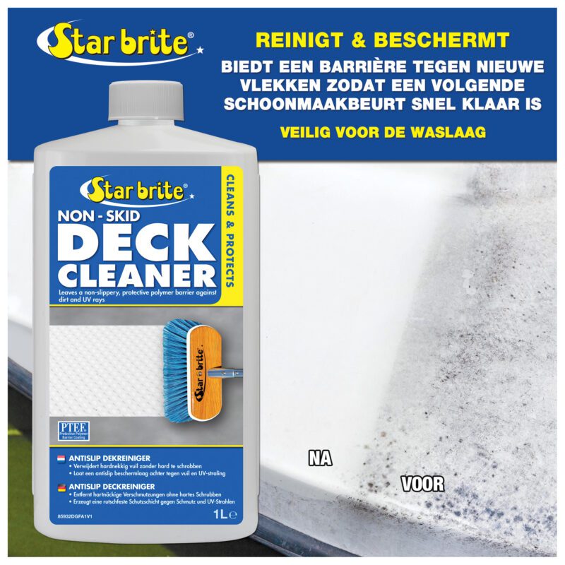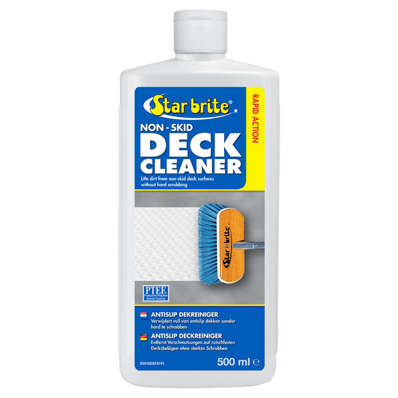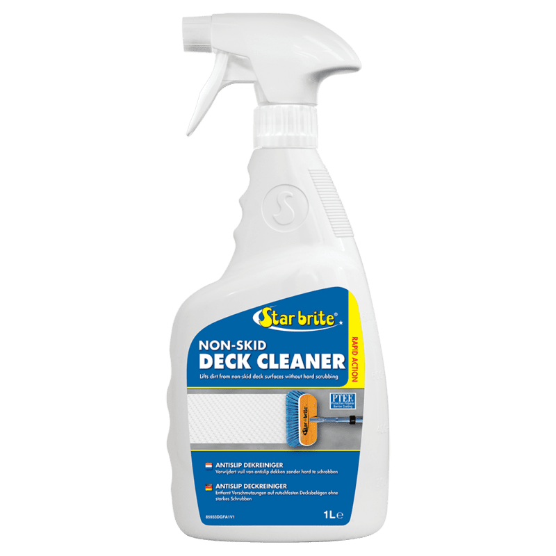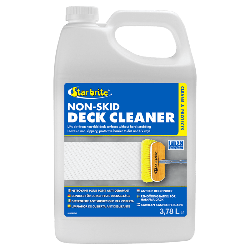 Star brite Antislip Dekreiniger de meest effectieve en gemakkelijkste manier om gestructureerde polyester, hout, composiet en geschilderde dekken schoon te maken. De speciale chelerende middelen maken vuil en gemorste vloeistoffen los zonder dat er zwaar geschrobd hoeft te worden. De PTEF polymeren bieden een barrière tegen toekomstige vlekken, waardoor opruimen een fluitje van een cent wordt. Het is ook ideaal voor het reinigen van niet-gestructureerde oppervlakken, evenals alle polyester, vinyl, kunststof, metaal of rubberen oppervlakken.
