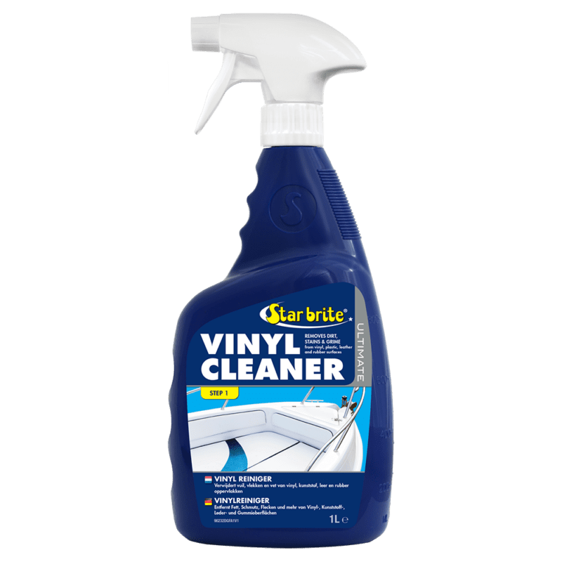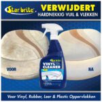 Star brite Ultimate Vinyl Reiniger is ontwikkeld om het hardnekkigste vuil, roet en vettige vlekken van vinyl, plastic, rubber en leren oppervlakken te verwijderen. Gebruik op auto-, camper- en bootbekleding, binnen- en buitenbekleding, uitrusting voor slecht weer, buitenkussens of luifels en meer.