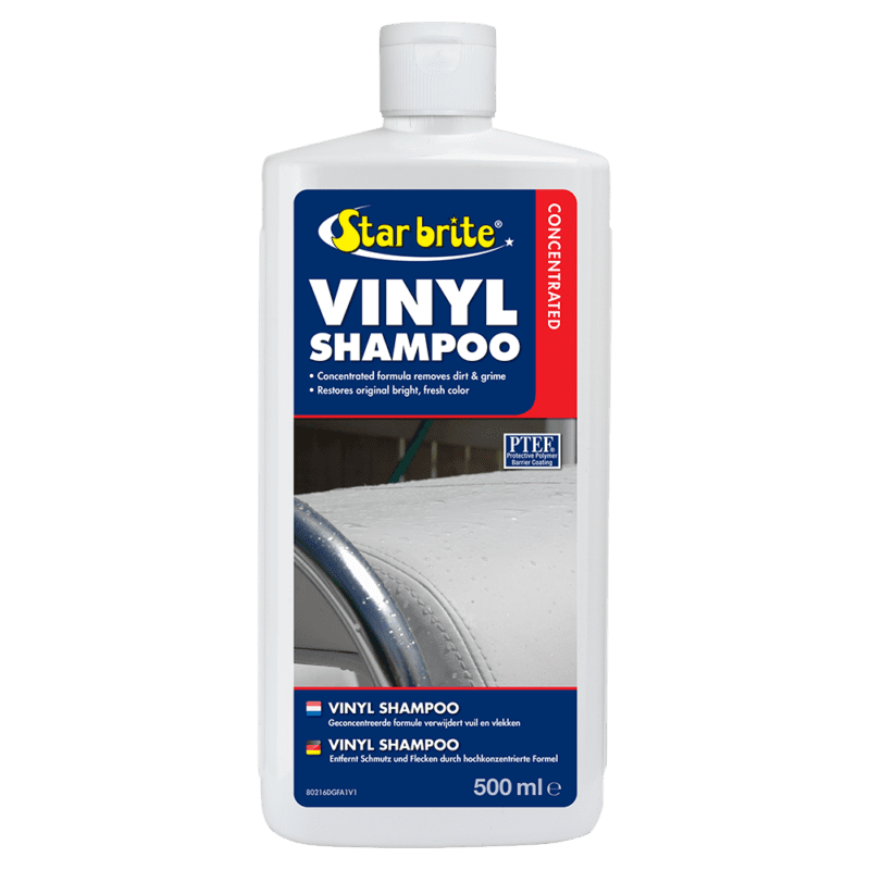 Star brite Vinyl Shampoo is de perfecte keuze voor het opfrissen van vinylgecoate canvas, stoelen, kussens en regenkleding. Met zijn krachtige werking reinigt het moeiteloos alle soorten vinyl oppervlakken, van daken en interieurs tot kleding en schoeisel. Zelfs gelamineerde vinyl apparaten en mica oppervlakken worden effectief schoon. Deze reiniger pakt niet alleen oppervlakkig vuil aan, maar dringt ook door tot diep ingesloten aanslag en laat je vinyl zowel van binnen als buiten weer stralen. De geconcentreerde formule staat garant voor een grondige schoonmaak, terwijl het biologisch afbreekbaar is en geen schadelijke chemicaliën bevat. Kortom, het is een milieuvriendelijke oplossing die je vinyl er weer als nieuw uit laat zien.